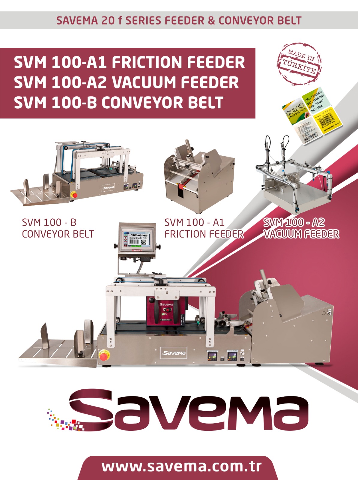 SAVEMA conveyors are designed to work with friction and vacuum feeders that placed back of conveyor for serving in different industries. While products are moving continuously or intermittently, we are able to mark with Inkjet, Thermal Transfer Printers and Labelling. We are adjusting marking place with very sensitive sensors. It is very easy to use our systems. It can be mounted barcode readers, image control systems, address labelling&printing tools to our systems. At the rear back, there is a gathering box that is for marked products.