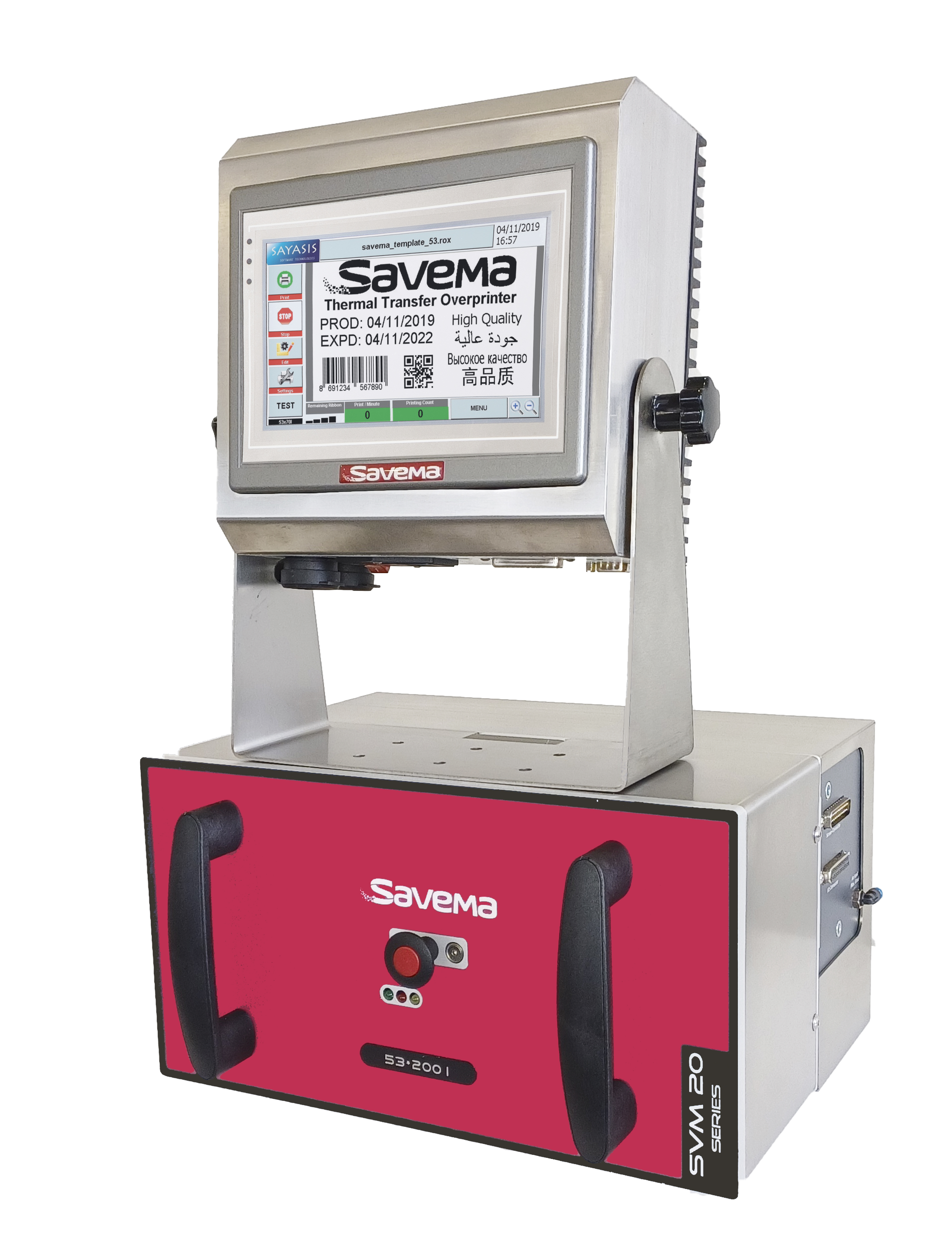 The high performance, cost-effective SAVEMA Thermal Transfer Overprinters (TTOs) are versatile enough for printing fixed and variable text, data, and graphics. It is ideal for reproducing bar codes, real-time, sell-by dates, batch numbers, prices, source codes and much more. Two-component models of brackets (Intermittent & Continuous) can be easily integrated into machines such as vertical and horizontal form-fill-seal systems, primary labelers, thermoformers, and overwrapping equipment. The units are suitable for all intermittent applications within the food, pharmaceutical cosmetics, and automobile spare parts industries and have the capability to code all kinds of 1D/2D barcodes and Datamatrix codes.