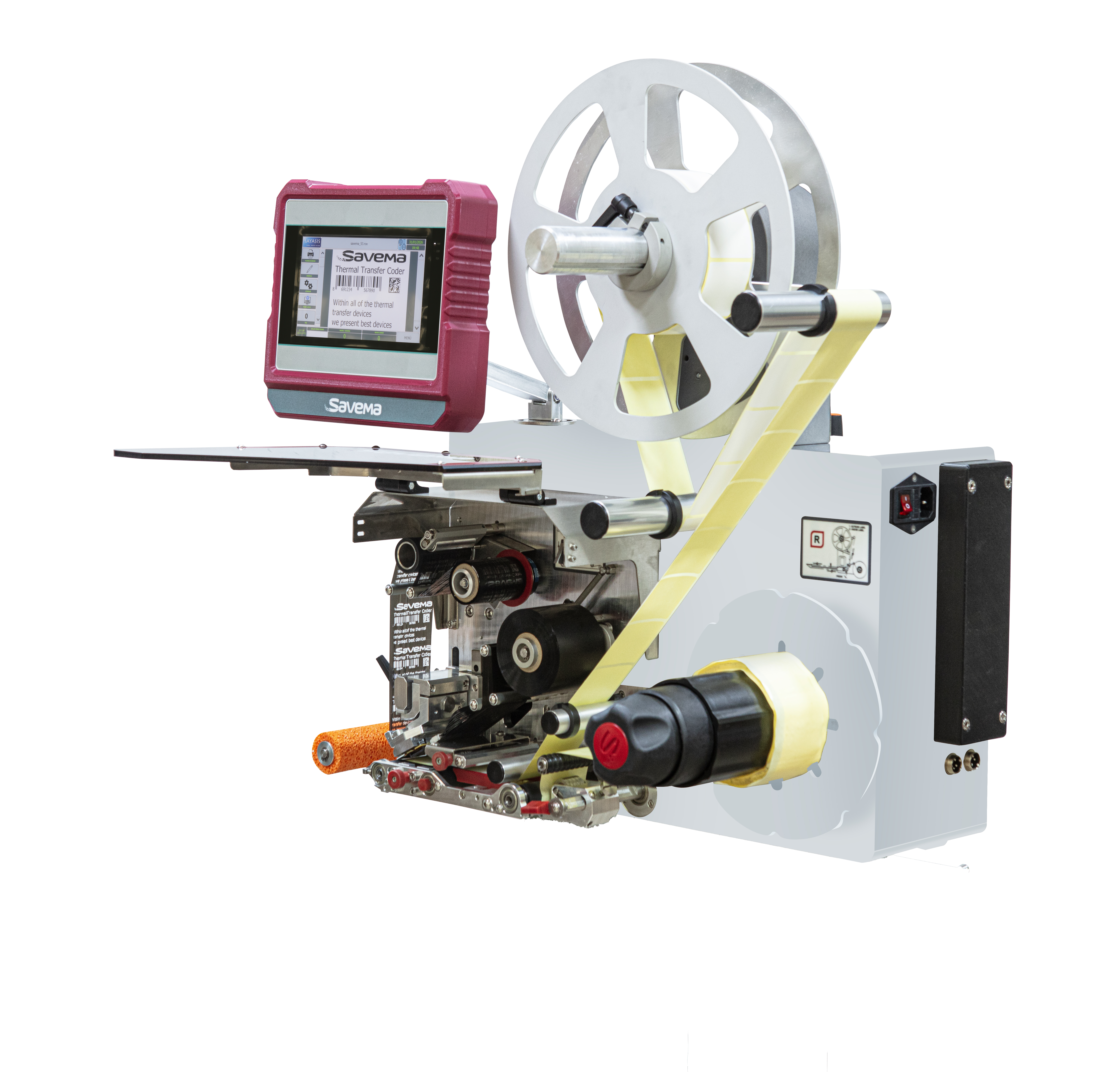 Software: SAYASIS Template Design (Date and Time, Custom Formatted Date and Time, Text, Text Block, Merge Fields, Database Support, Counter, Logo, 1D / 2D Barcodes, GS-1 Barcodes, Table Crea tion Support and User-Friendly Interface) Windows Driver Support, Nicelabel Software support, Code soft Software Support, Emulator Support, Printer Management with SPPL (Savema Protocol) Commands, Printer Control with Remote Control)