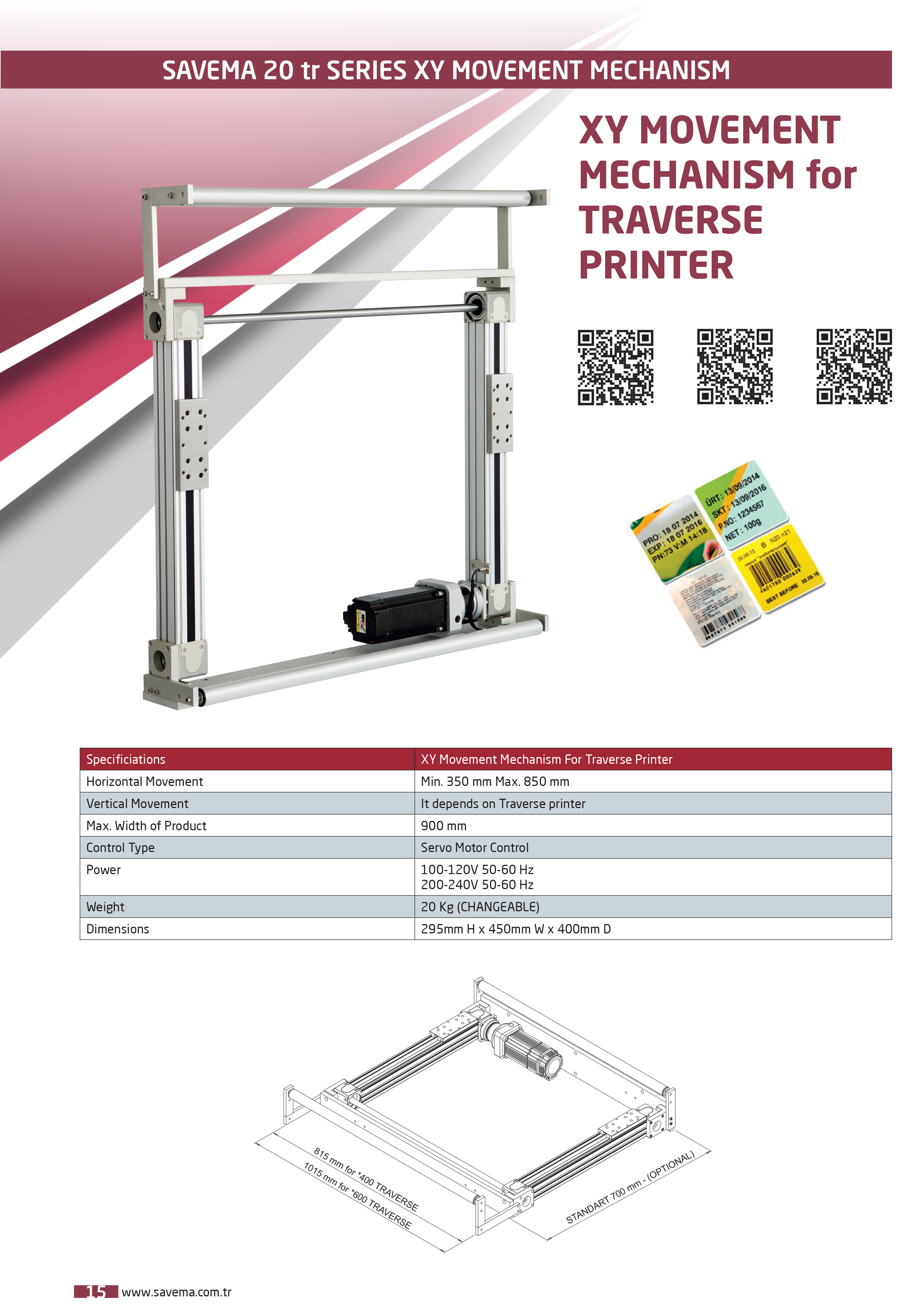 SAVEMA XY Movement Mechanism system is designed to work with traverse printers. This system provides that the traverse printer can move to axis "X" and to axis "Y". It is more suitable for multi-line packaging machines that can pack more than 1 horizontal and vertical at one time like thermoform machines.